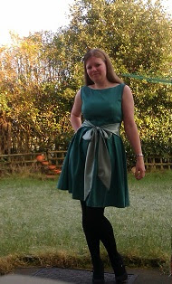 I made it to be tied in the bow at the front but you can also wrap the sash like above or tie it at the back and leave the front plain. I think this would be a really good bridesmaid dress pattern and the taffeta I use has a slightly permanently wrinkled look to it which means it won't show that much if it gets creased. (It sounds nicer than I have written it!)